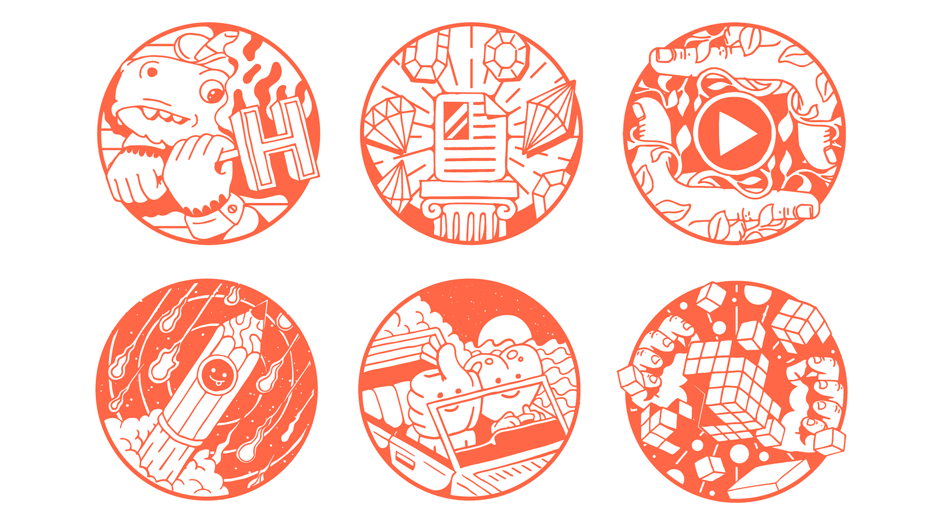 A collection of illustrated and animated assets for the Headline Studio website.